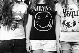 que compõem um estilo meio rocker com umas blusas de banda